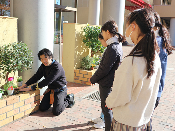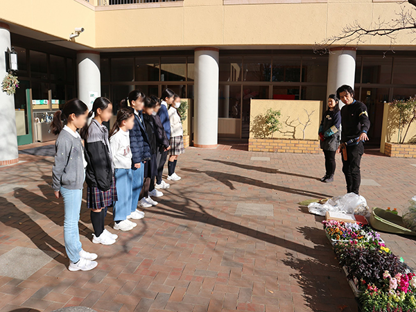 2024年12月14日、昨年もご依頼いただいている立教女学院小学校のお子様たちと花壇の作成をいたしました。