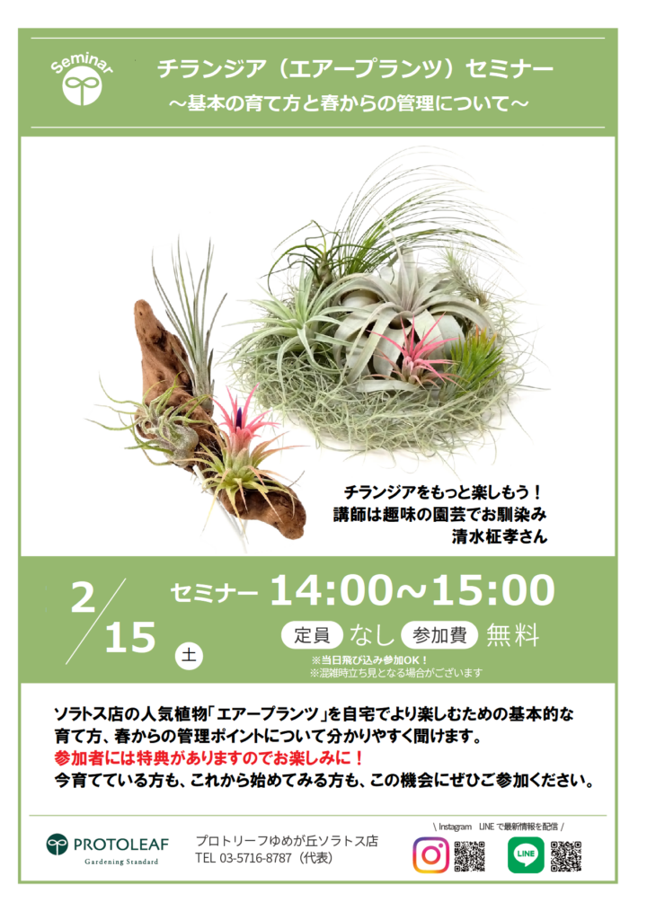【ゆめが丘】2/15(土)チランジア(エアプランツ)セミナー 〜基本の育て方と春からの管理について〜