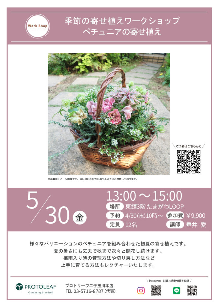 【二子玉川】5/30(金)季節の寄せ植えワークショップ ペチュニアの寄せ植え