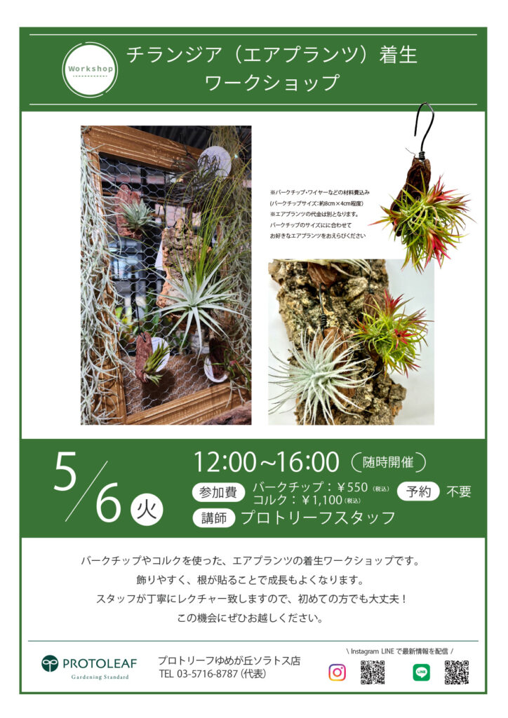 【ゆめが丘】5/6(火)チランジア(エアプランツ)着生ワークショップ