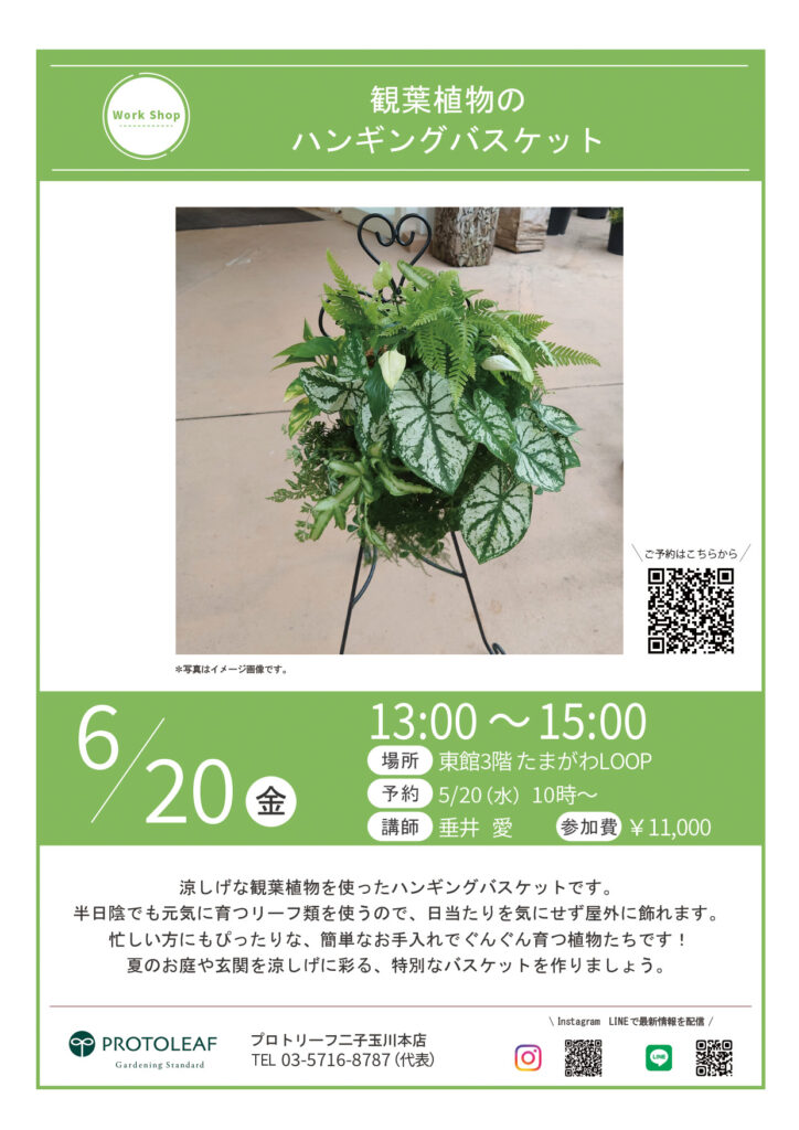 【二子玉川】6/20(金)観葉植物のハンギングバスケット