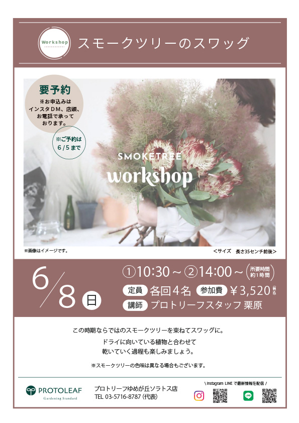 【ゆめが丘】6/8(日)スモークツリーのスワッグ