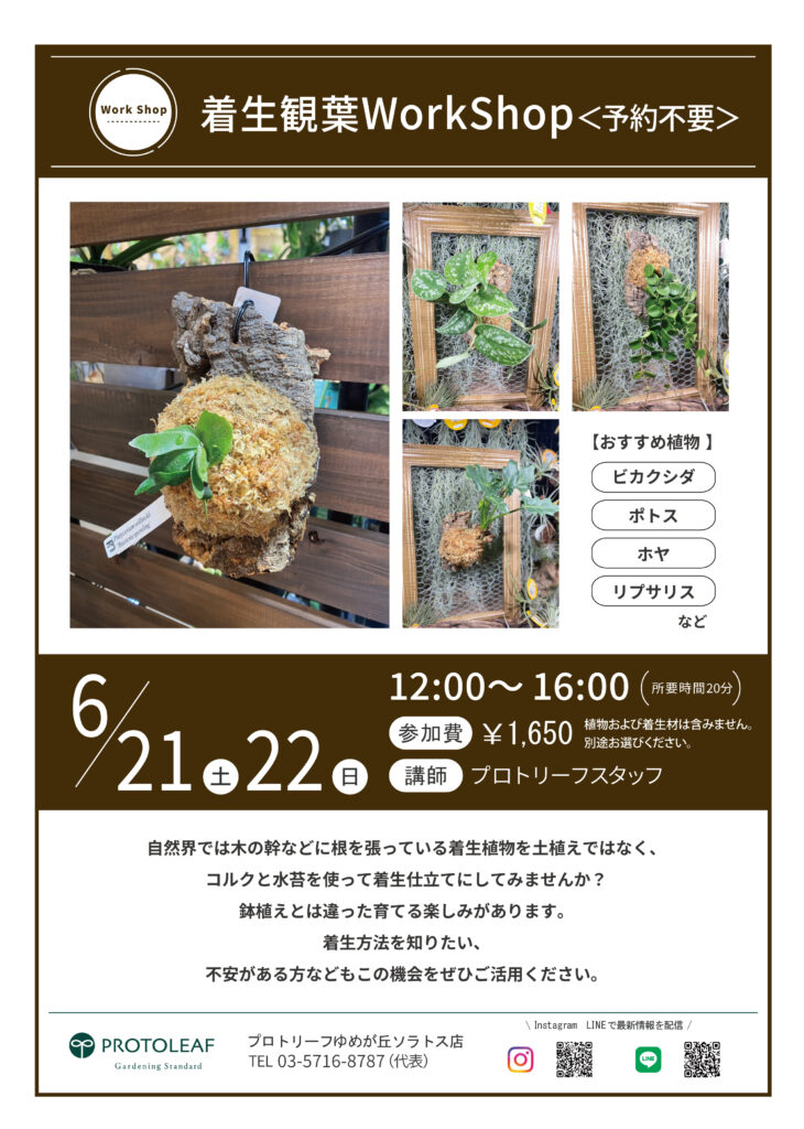 【ゆめが丘】6/21(土)、6/22(日):着生観葉ワークショップ