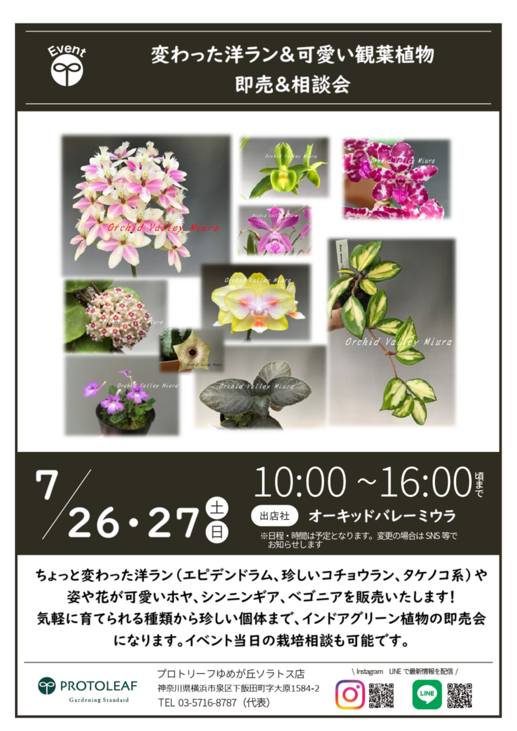 2025年6月27日 / 最終更新日時 : 2025年7月8日 protoleaf_blog イベント 【ゆめが丘】7/26(土)~27(日) 洋ラン&観葉植物即売会 コメントを残す コメントをキャンセルメールアドレスが公開されることはありません。 ※ が付いている欄は必須項目ですコメント ※ 名前 ※ メール ※ サイト 次回のコメントで使用するためブラウザーに自分の名前、メールアドレス、サイトを保存する。