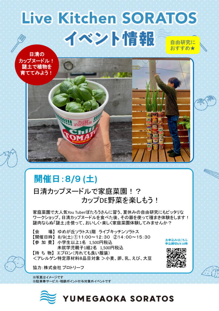 【ゆめが丘】8/9(土)日清カップヌードルで家庭菜園!?カップDE野菜を楽しもう!