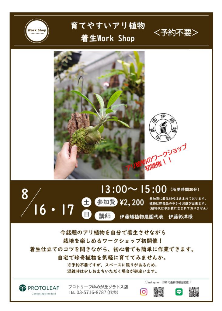 【ゆめが丘】8/16(土)・17(日)育てやすいアリ植物 着生ワークショップ