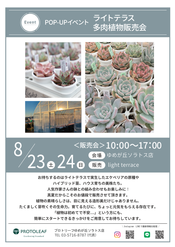 【ゆめが丘8/23(土)・8/24(日)】POP UPイベント 多肉植物販売会
