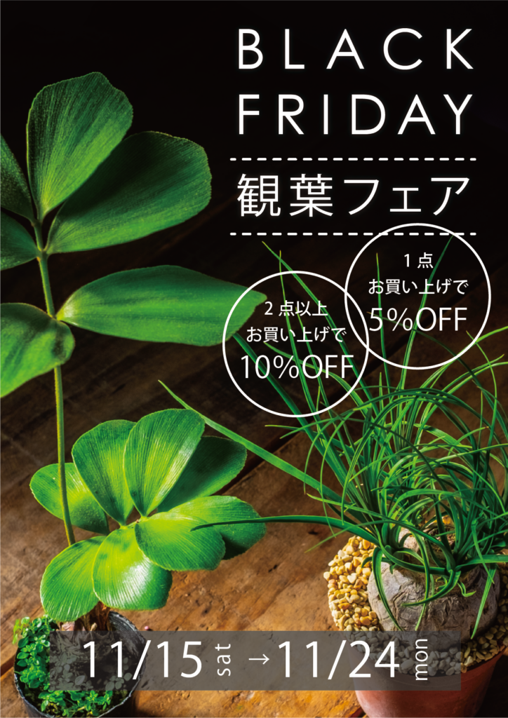 【ゆめが丘】11/15(土)~11/24(月)BLACK FRIDAY 観葉フェア