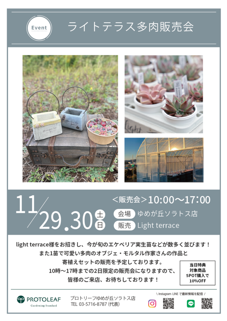 【二子玉川・ゆめが丘】ライトテラス多肉販売会