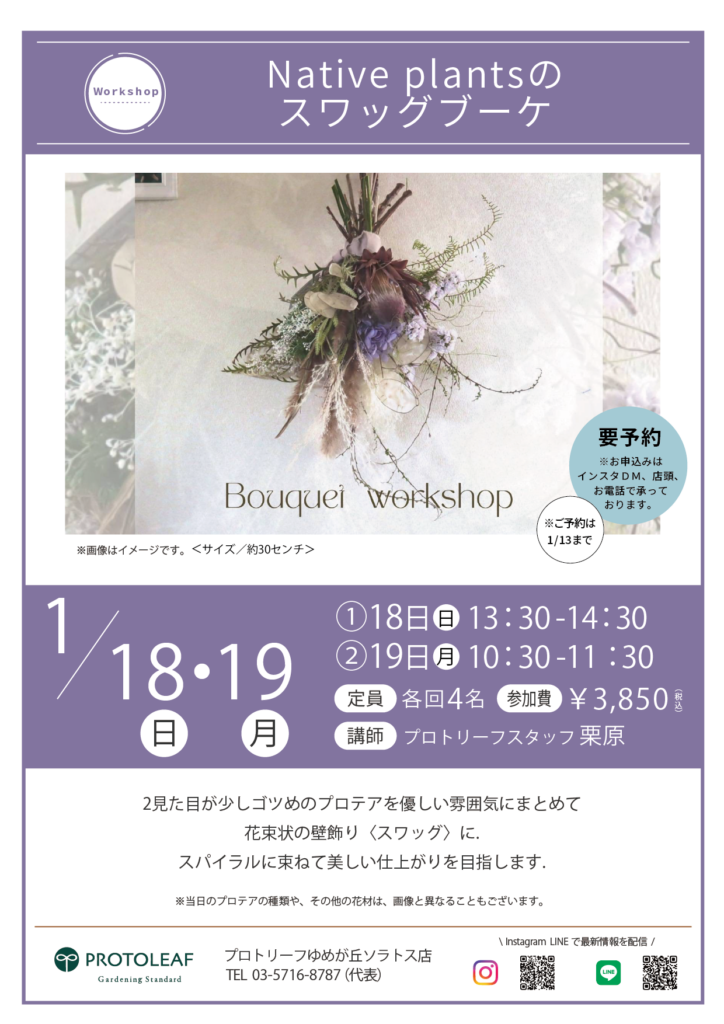 【ゆめが丘】10/18(日)・19(月)Native plantsのスワッグブーケ