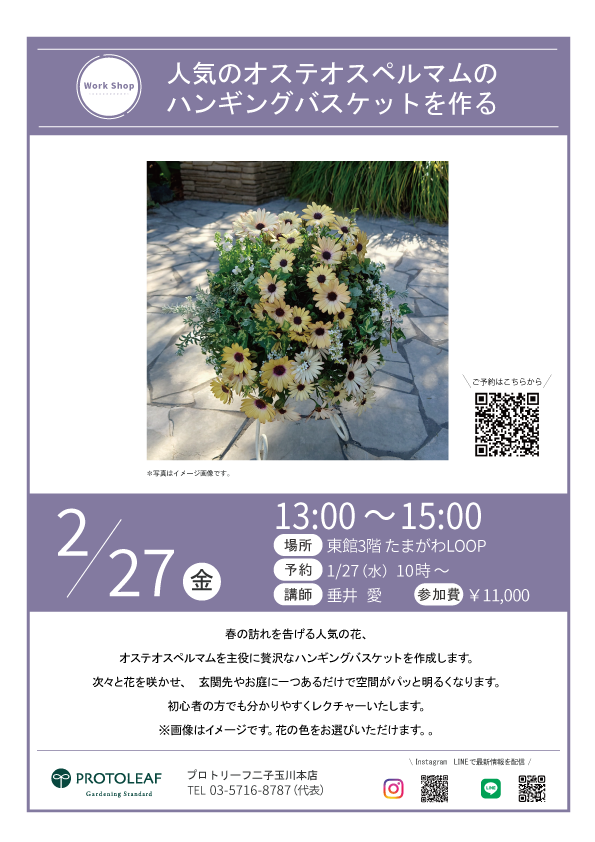 【二子玉川】2/27(金)人気のオステオスペルマムのハンギングバスケットを作る