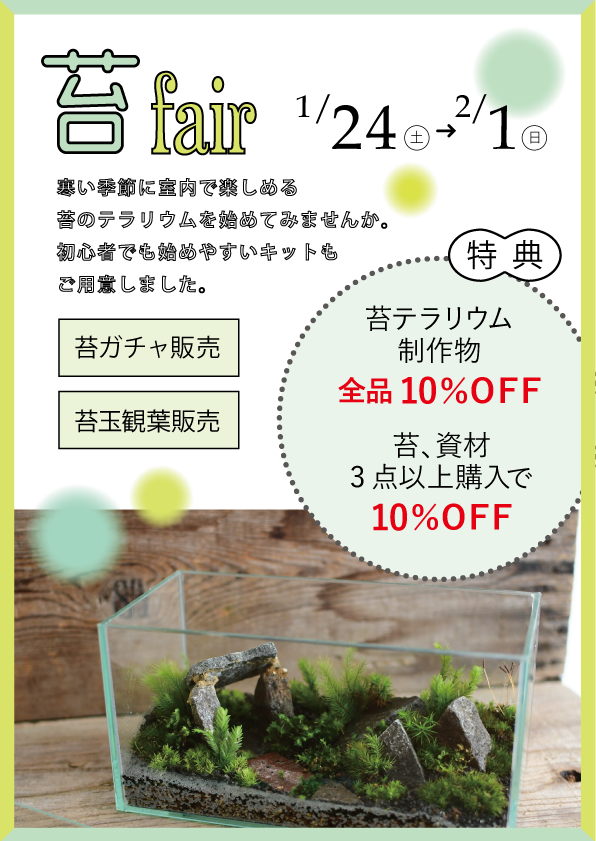 2026年1月19日 / 最終更新日時 : 2026年1月22日 protoleaf_blog 朝市 【二子玉川】1/24(土)~2/1(日)苔フェア コメントを残す コメントをキャンセルメールアドレスが公開されることはありません。 ※ が付いている欄は必須項目ですコメント ※ 名前 ※ メール ※ サイト 次回のコメントで使用するためブラウザーに自分の名前、メールアドレス、サイトを保存する。