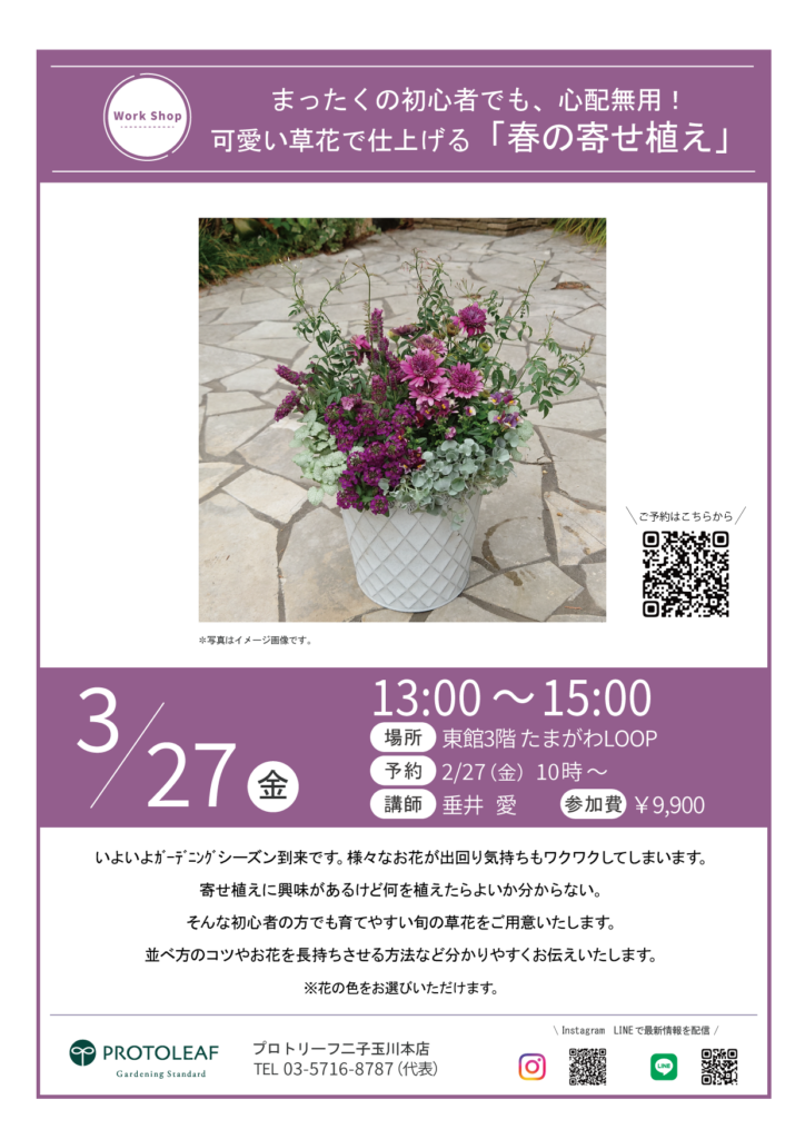 【二子玉川】3/27(金)まったくの初心者でも、心配無用!可愛い草花で仕上げる「春の寄せ植え」