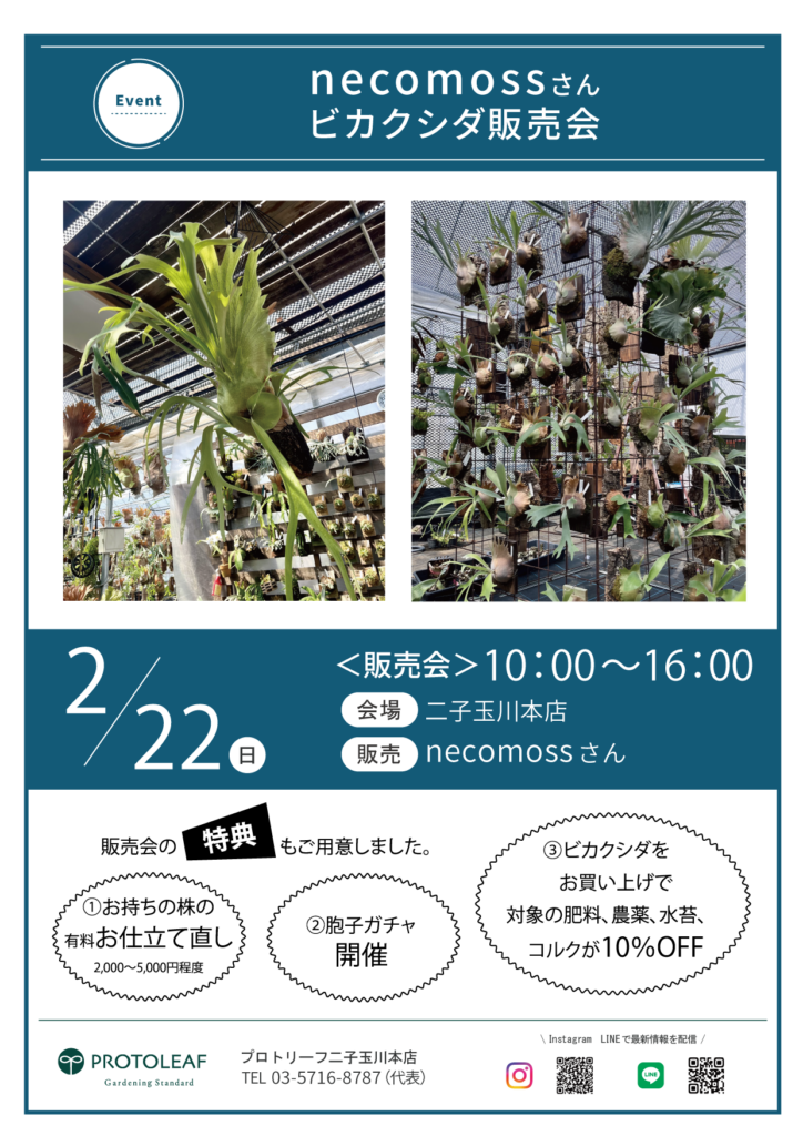 【二子玉川2/22(日)・ゆめが丘2/23(月・祝)】necomossさん ビカクシダ販売会